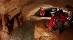Philippe, Safia et Rafi partent devant et commencent la traversée des gours remplis d’eau. Pascalette, Sara et Catherine optent pour un ramping et chatière afin d’éviter de se mouiller. Tous se rejoignent plus loin. Escalade avec une corde à nœuds sur place pour explorer une autre galerie parallèle.